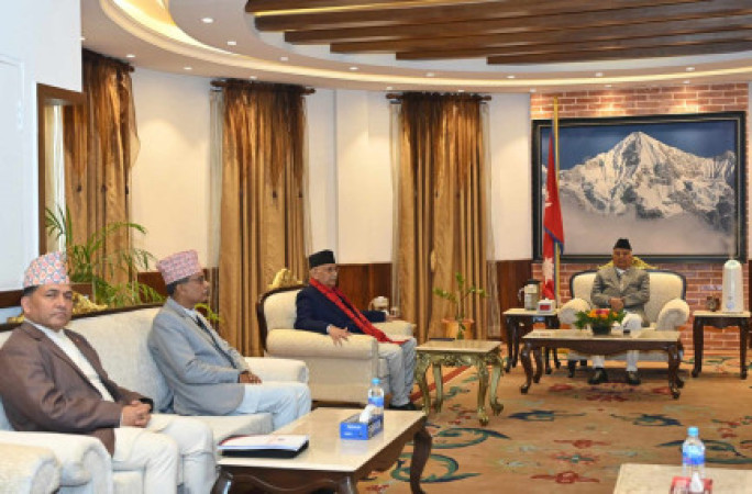 कानुन मन्त्री र मुख्य सचिवलाई लिएर राष्ट्रपति भेट्न पुगे प्रधानमन्त्री ओली