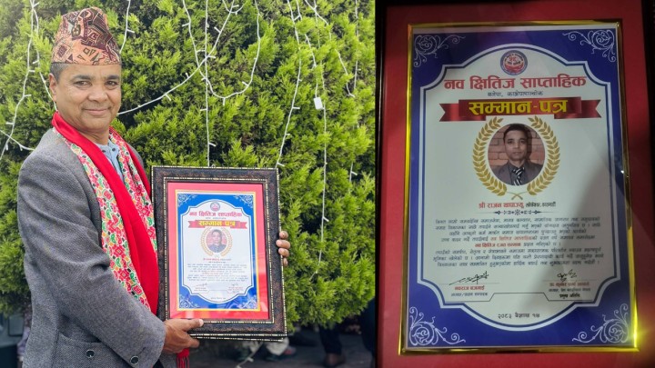 काठमाडौं । नव क्षितिज साप्ताहिकको रजत वर्ष समापन समारोह, २०८३ एक ऐतिहासिक, भावनात्मक र स्मरणीय क्षणका रूपमा सम्पन्न भएको छ । पत्रकारिता र सामाजिक रूपान्तरणको यात्रामा २५ वर्ष पूरा गरेको यस प्रतिष्ठित साप्ताहिकले आफ्नो गौरवपूर्ण इतिहासलाई उत्सवका रूपमा मनाउँदै समाजका प्रेरणादायी व्यक्तित्वहरूलाई सम्मानित गरेको थियो । सोही अवसरमा वरिष्ठ पत्रकार तथा समर्पित सामाजिक अभियन्ता राजन थापा “नव क्षितिज रजत पत्रकारिता सम्मान” बाट सम्मानित हुनु भएको छ ।