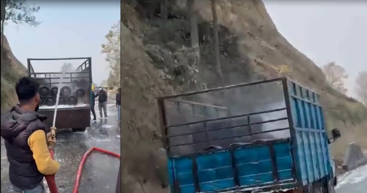 काठमाडौंबाट त्रिशूली जाँदै गरेको गाडीमा ग्यास सिलिन्डर लिक, राजमार्ग अवरूद्ध